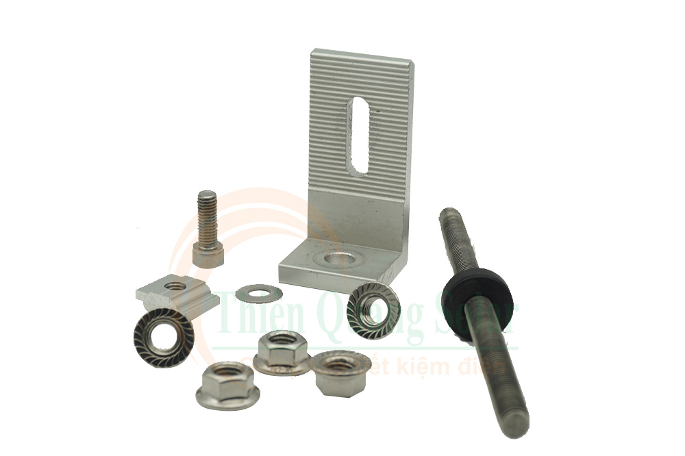Chân L mái tôn có bulong Chất liệu: Nhôm AL6005-T5 và SUS304 Bề mặt: Anodized Chống ăn mòn: Tốt Bulong: M10x200mm Chịu được sức gió 60m/s, lực tác động 1,4KN/m2 Tiêu chuẩn: AS / NZS 1170.2 & JIS C 8955: 2011